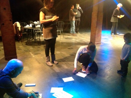 All three projects worked in studios. Sometimes, the work would reflect the ‘place’ of the studio or the building itself. More often, the studio was the base for exploring the concept of place itself or of particular places outside the studio. In the case of CY, the specific place of Bronant in Ceredigion, Wales, was frequently the focus, for example. (Adrian Jones, the choreographer, lives in the village of Bronant. The disused chapel represented home-place for him.)